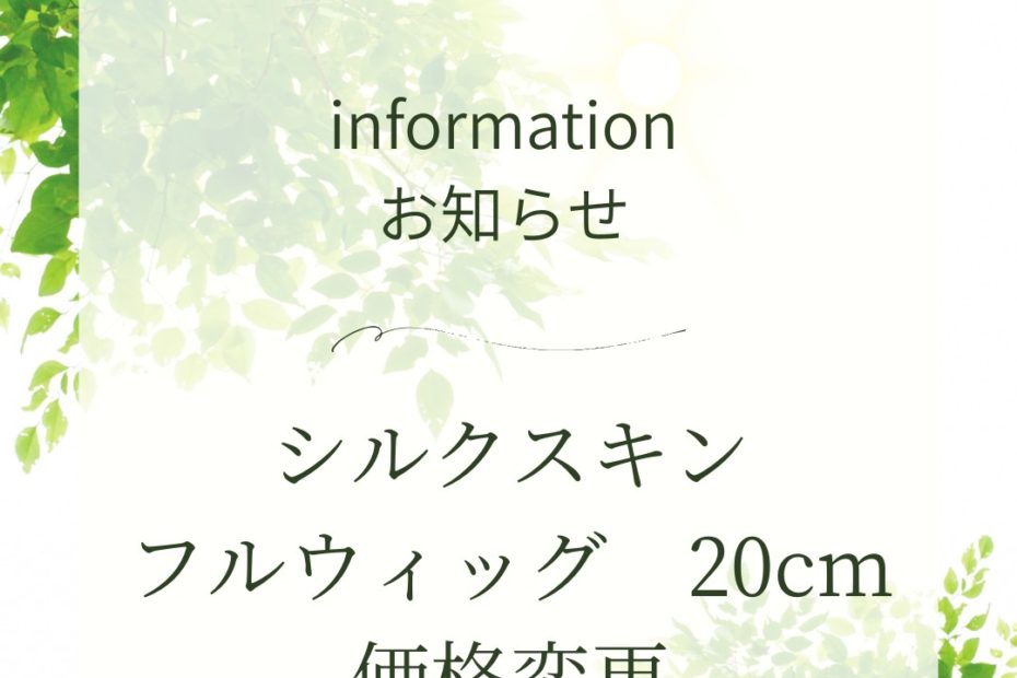 オリジナルウィッグシルクスキン 20cmの価格改定を2026年2月より変更させていただきます 価格変更改定のお知らせがあり、当店におきましても、連携店として下記の内容に準じ変更させていただきます。 【価格変更内容】・フル… ウィッグ価格変更のおしらせ